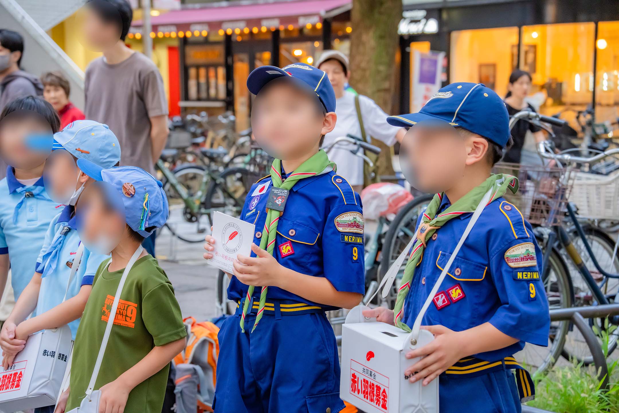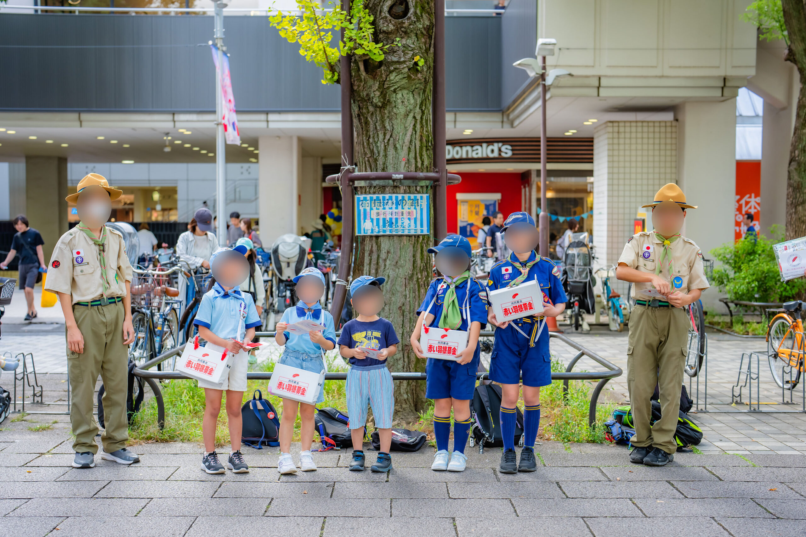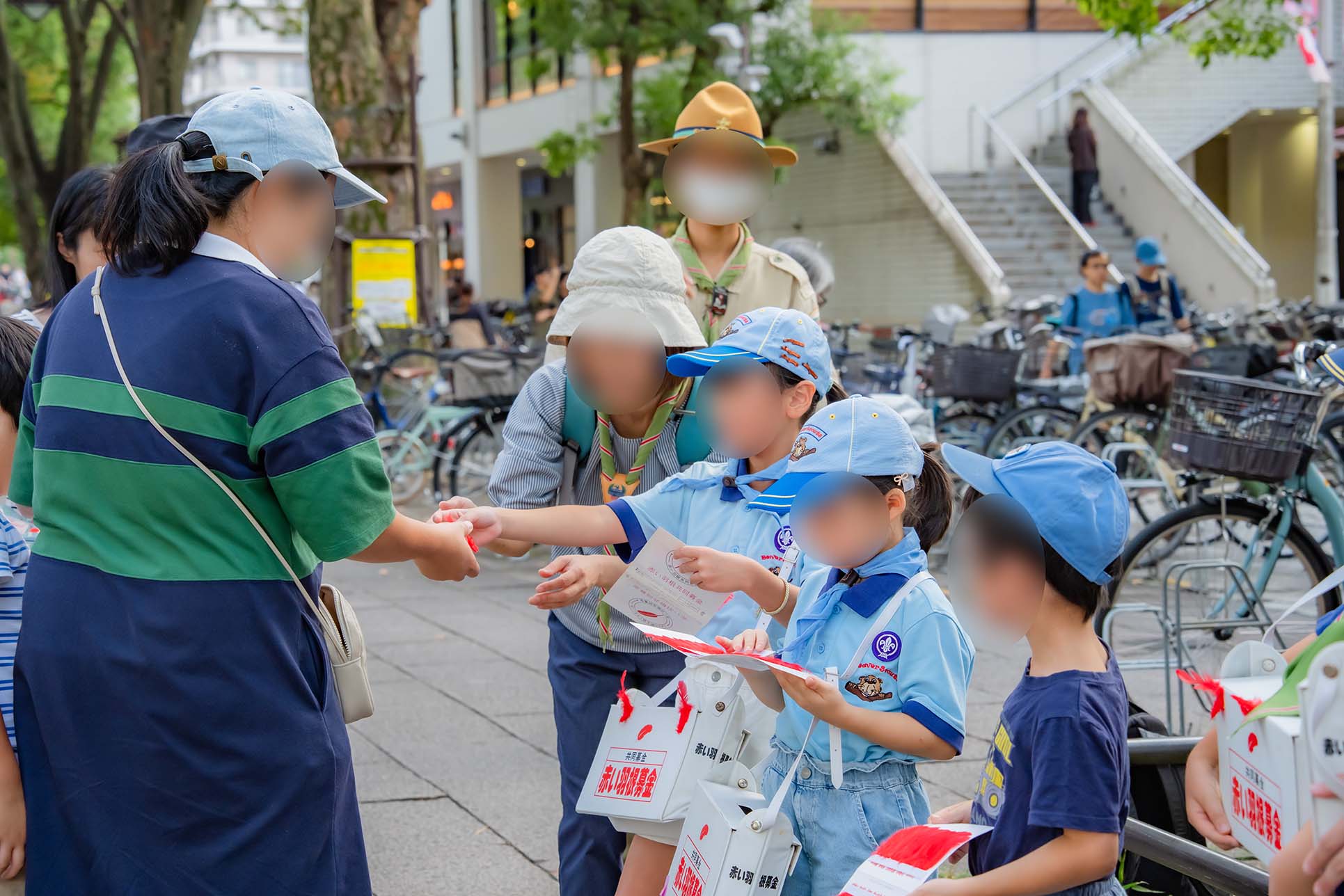 本日は、ビーバー隊、カブ隊、ボーイ隊の共同活動で、光が丘駅前で、赤い羽根共同募金の奉仕活動を行いました。