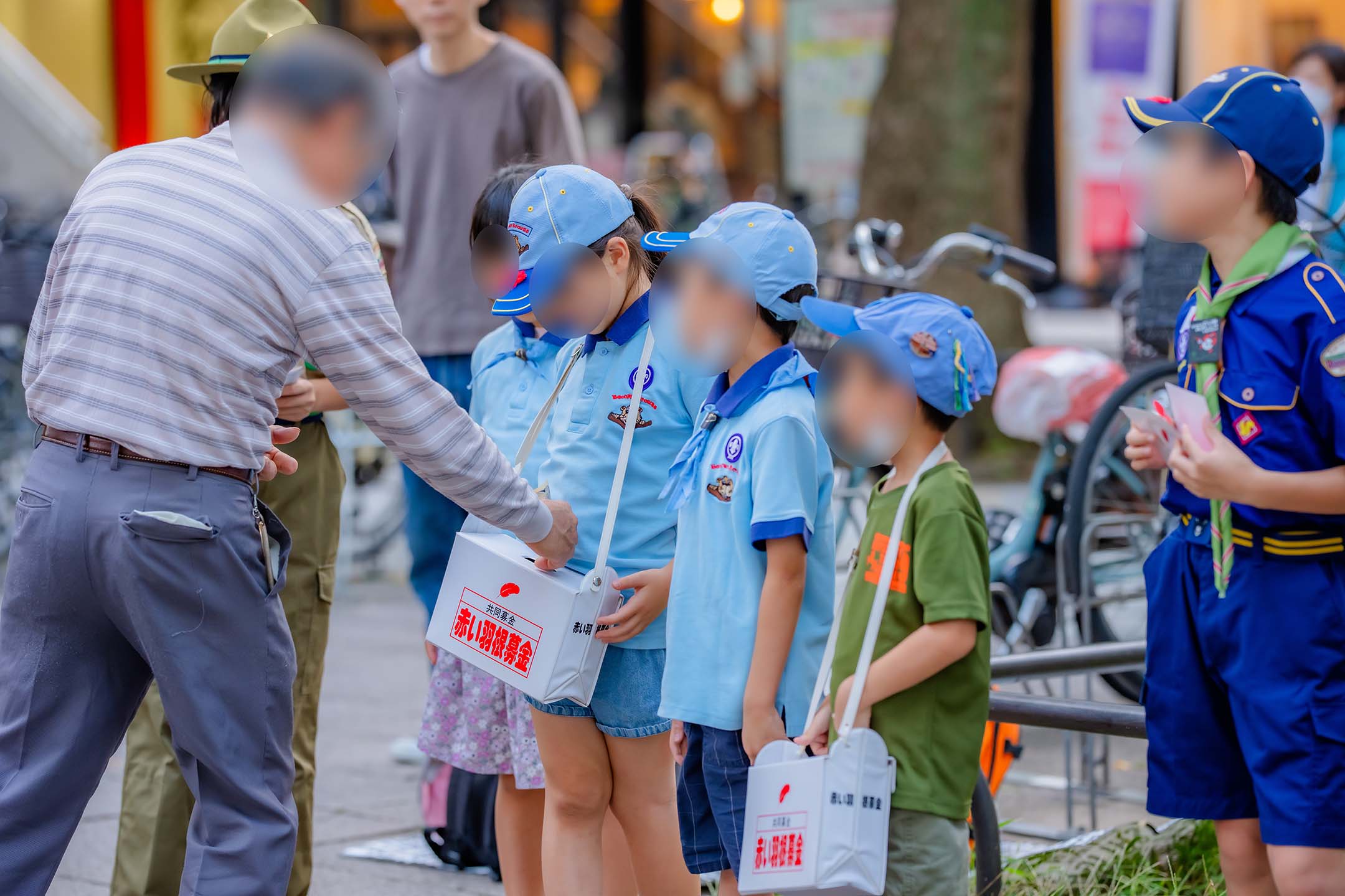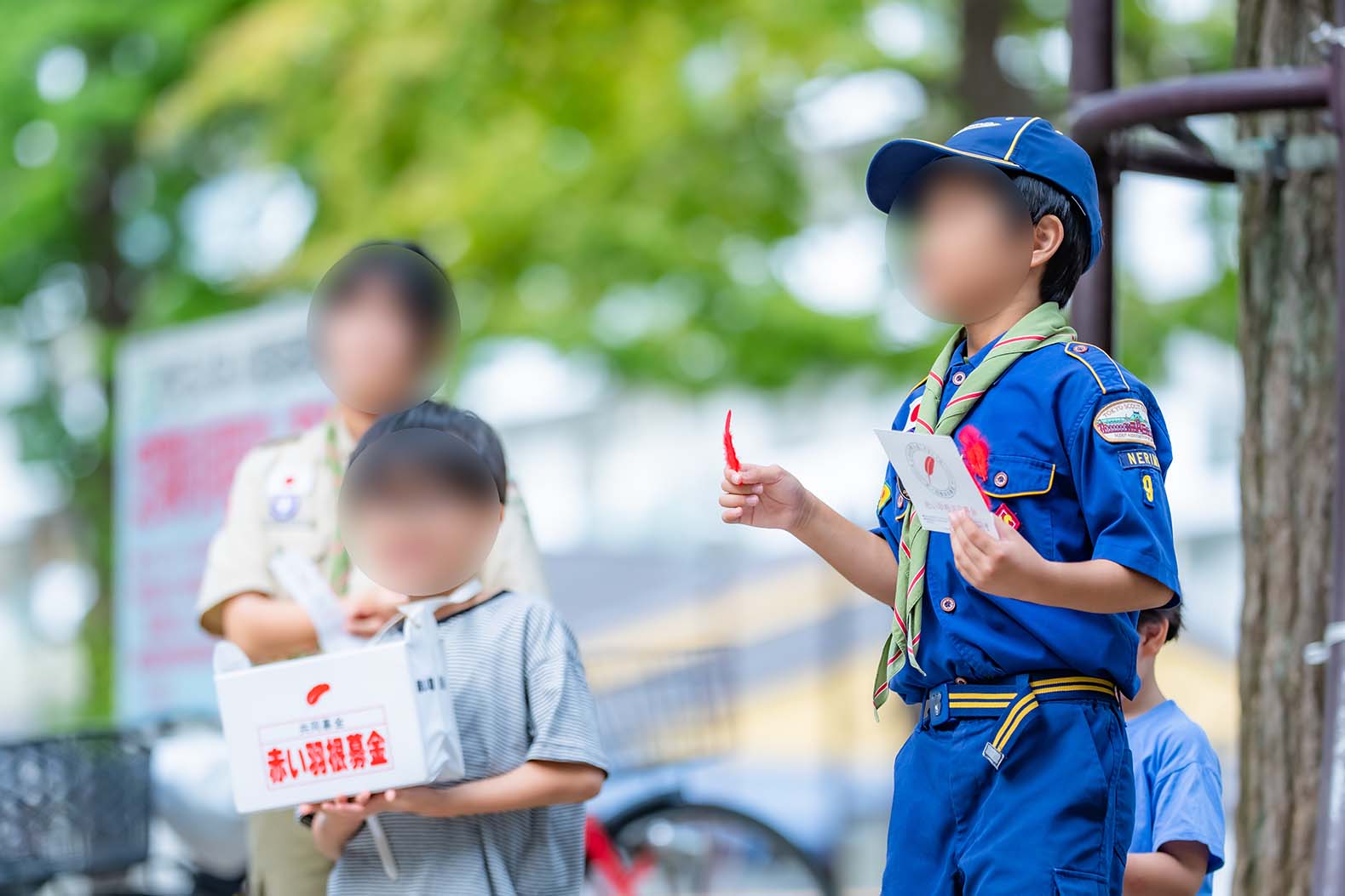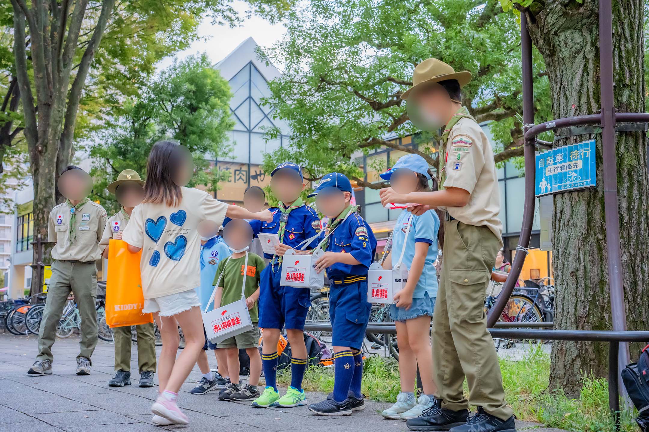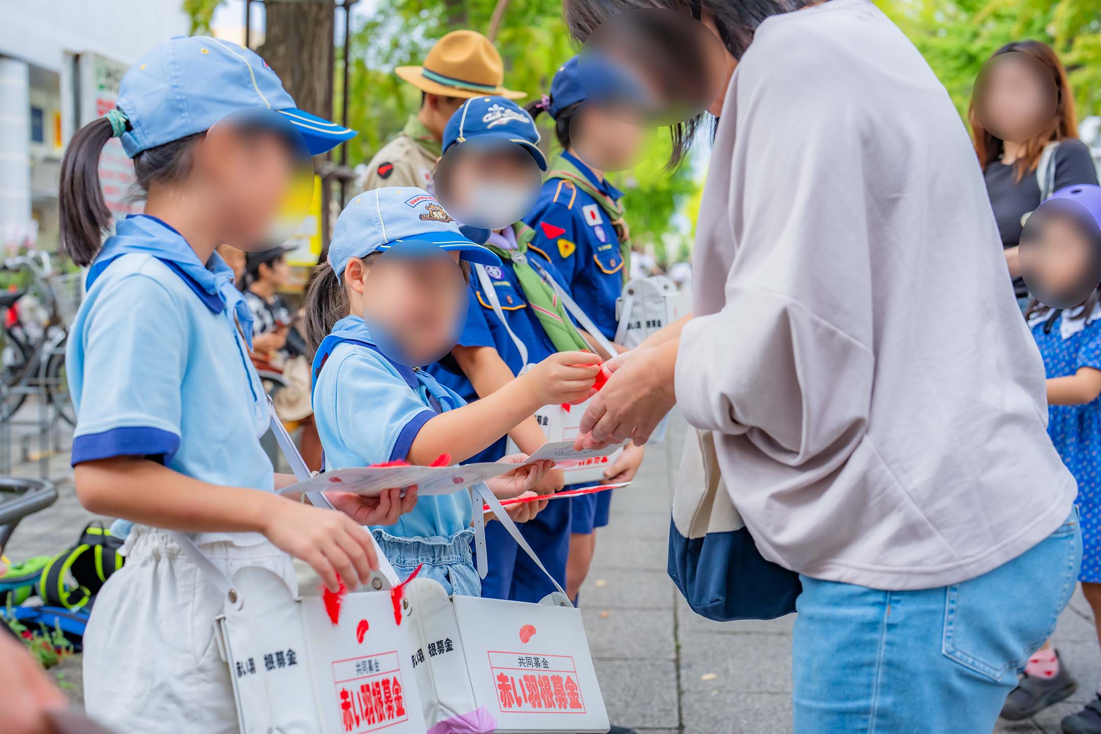 本日は、ビーバー隊、カブ隊、ボーイ隊の共同活動で、光が丘駅前で、赤い羽根共同募金の奉仕活動を行いました。