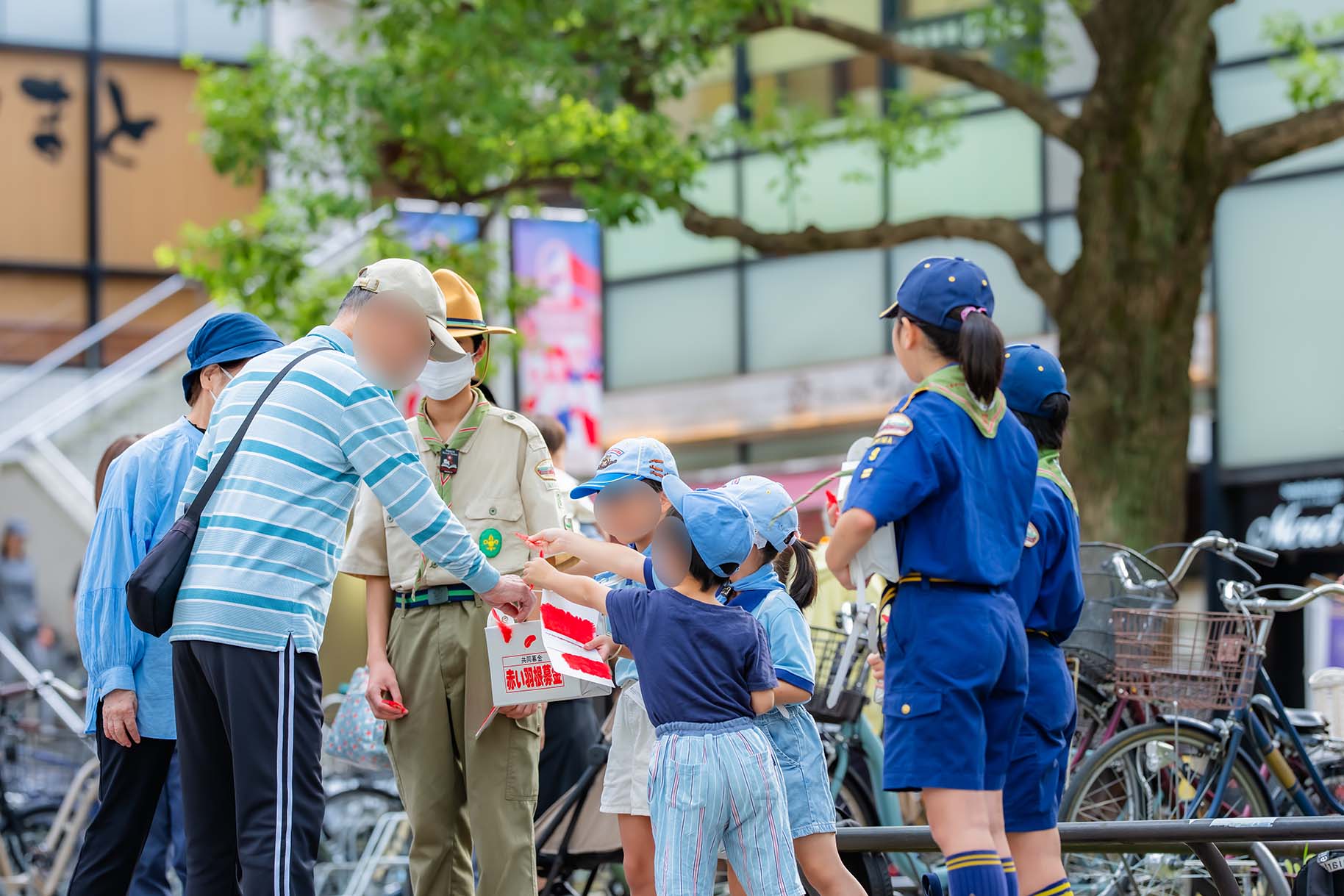 スカウトたちの大きな声で元気よく呼びかけをする姿に、たくさんの方に募金して頂けました。