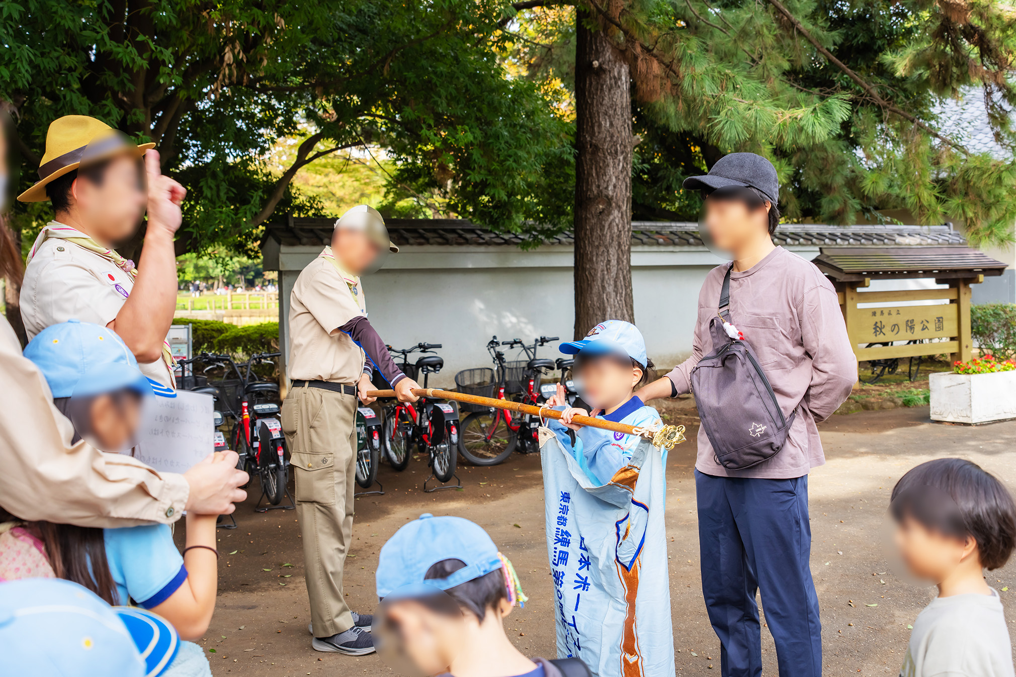 秋の陽公園に到着し、まずは新規入団者の入隊式を行いました。